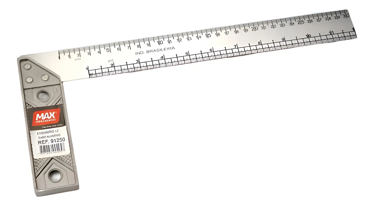 O Esquadro Profissional Em Aço E Cabo Alumínio 30cm Moveleiro da marca Max Ferramentas é a ferramenta ideal para marceneiros e profissionais que buscam precisão e durabilidade em seus projetos. Com um comprimento de 30 cm e um ângulo de circunferência de 90°, este esquadro é perfeito para garantir cortes e medições exatas, essenciais para a criação de móveis e estruturas de madeira.