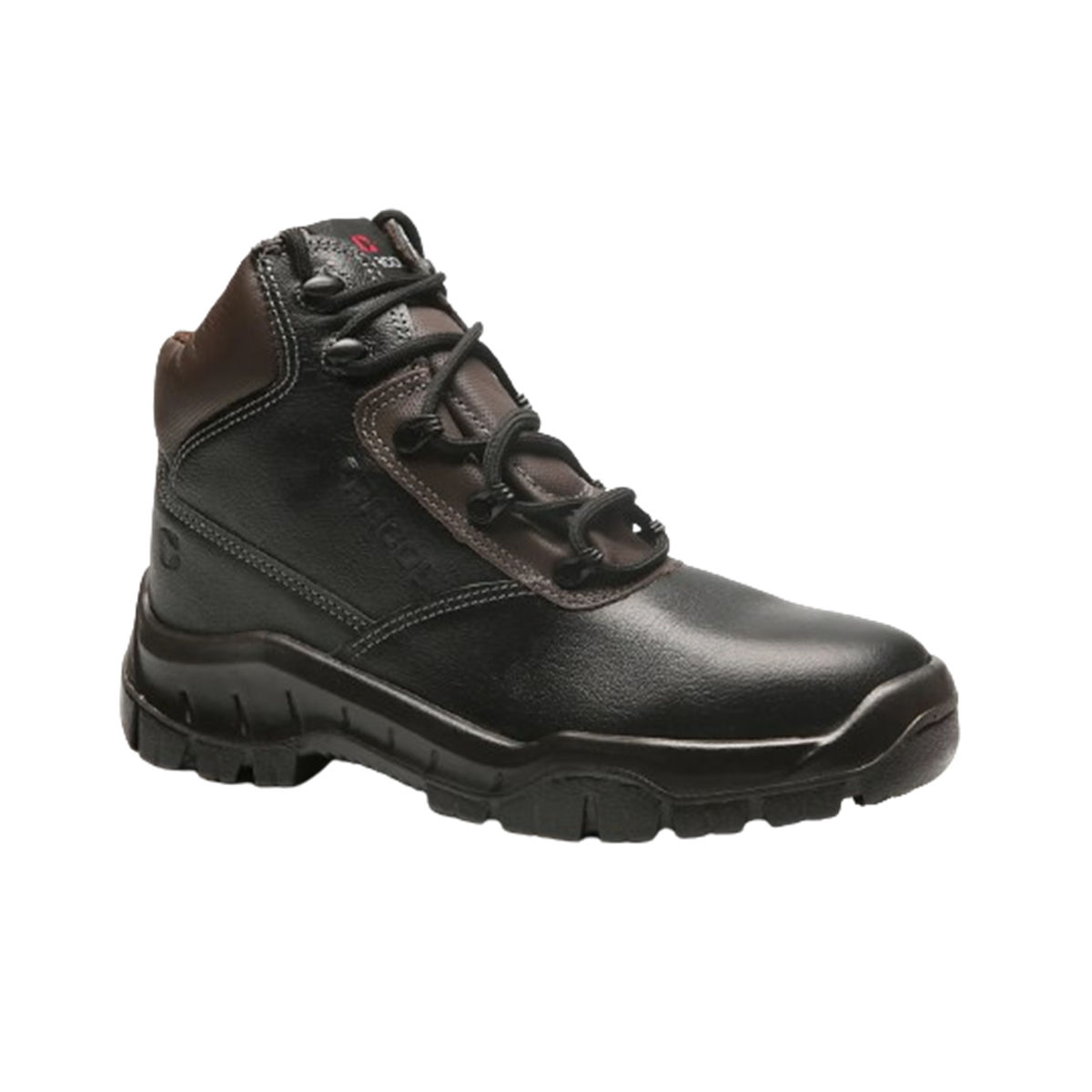 Bota para uso ocupacional com fechamento em cadarço e confeccionada em vaqueta discovery preta. Forração interna na gáspea e forro do cano em nylon com excelente absorção de suor e solado poliuretano (PU) bidensidade e estabilizador de caminhada.