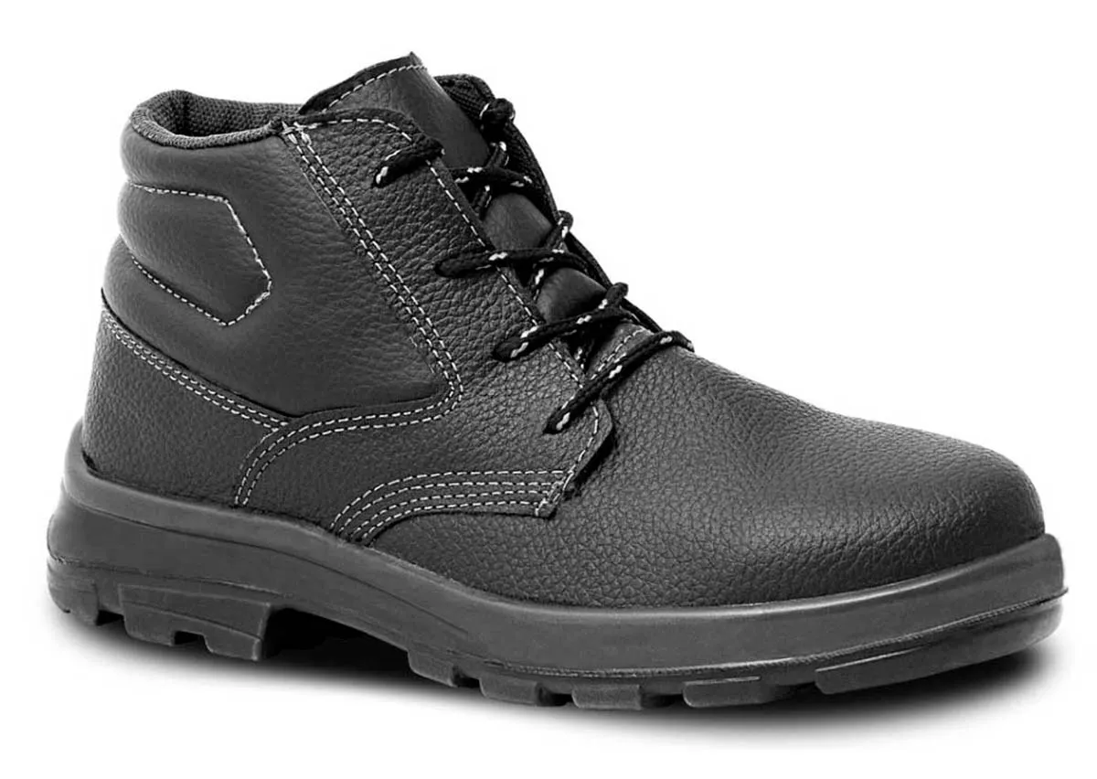 Botina de Amarrar Usafe CA 41453 uso profissional tipo botina, fechamento em cadarço, confeccionado em couro curtido ao cromo, palmilha de montagem em material sintético montada pelo sistema strobel, biqueira de conformação, solado de poliuretano bidensidade com propriedade antiderrapante injetado diretamente no cabedal, sistema de absorção de energia na região do salto, resistente ao óleo combustível.