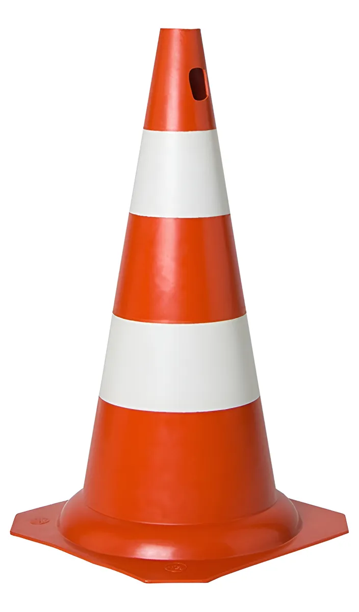 Cone de segurança de alta resistência, confeccionado em PVC.